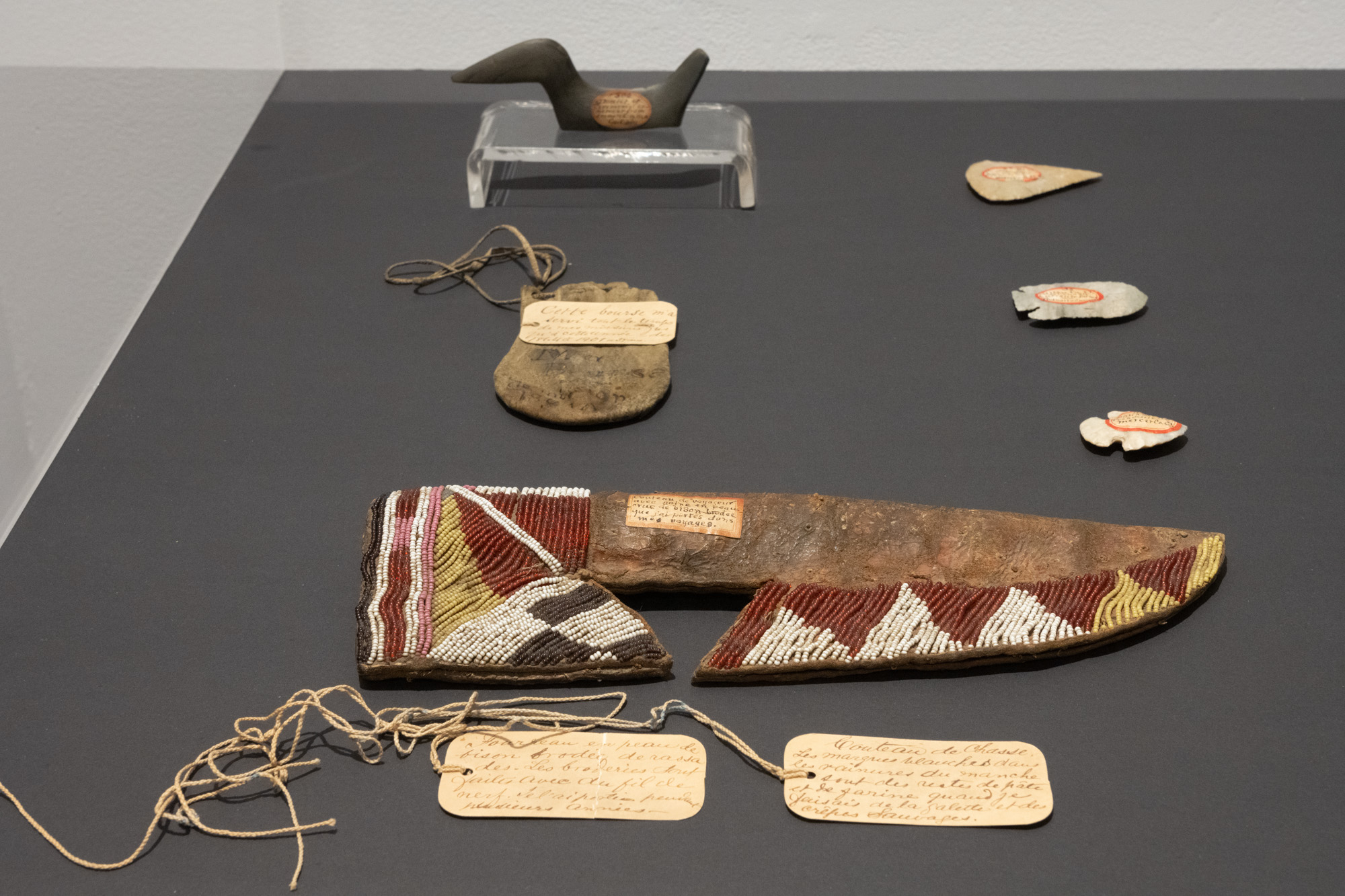 Louis-Napoléon Payant, dit le Père Saint-Onge (1842-1901), a été étudiant puis professeur au Séminaire de Saint-Hyacinthe, avant de partir dans l’ouest des États-Unis de 1864 à 1872. Missionnaire auprès des colons et des communautés autochtones, il est également devenu linguiste, spécialiste des langues autochtones yakama et cayuse, et du dialecte chinook. À son décès en 1901, il a légué au Séminaire près de 500 objets archéologiques, ethnographiques, zoologiques et scientifiques, ainsi que plusieurs centaines d’ouvrages. Peu d’informations nous sont parvenues sur leur mode d’acquisition. Cette collection témoigne plutôt de l’intérêt que portait Saint-Onge aux autres cultures, à la nature qui l’entourait et aux développements scientifiques à une époque de grands bouleversements politiques, culturels et intellectuels. Elle indique également l’existence de rapports de pouvoir coloniaux, tant dans l’expérience missionnaire que dans le transfert de propriété des objets et le développement des connaissances, au détriment des cultures et des savoirs autochtones.